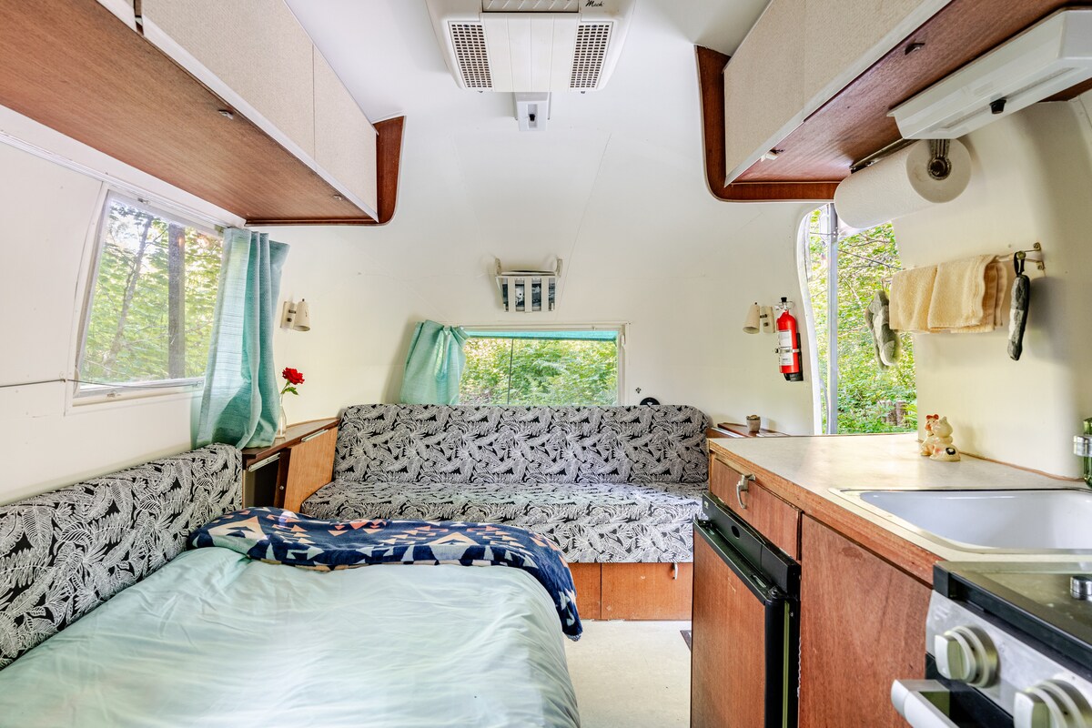 Na Mt. Baker-Snoqualmie. Nat. Forrest na 4 + akru 900 stop na nábřeží a zalesněném pozemku s 1 lůžkovým karavanem a stanem, které jsou skvělé pro skupiny, dlouhá pláž s velkými plaveckými jamkami a rybařením. Plně vybavené a zařízené s nádherným výhledem na řeku a hory. Plně vybavené., kuchyň a ložní prádlo. Terasa s výhledem na řeku s venkovním vestavěným jídelním barem a stoličkami, místo na piknik s velkým krbem a stativem, grilem, houpačkami, venkovní teplou sprchou. V blízkosti mnoha pěších túr, ledových jeskyní, historického hornického města duchů. Maximálně 2 domácí mazlíčci.