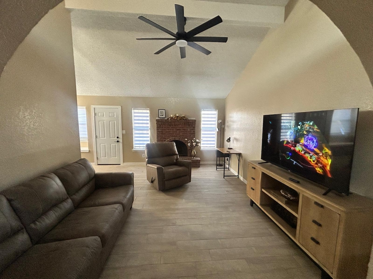 Vítej u sebe doma daleko od domova! Tento stylový moderní domov byl navržen s ohledem na pohodlí cestovatelů a je ideální pro rodiny i služebně cestující. Naším cílem je poskytnout prostor, kde mohou hosté zároveň pracovat a relaxovat. This never lived- in home is located in a quiet neighborhood with quick access to I-10, 2 min from local restaurants/Walmart, 9 min from Eastlake Marketplace/Amazon, 25 min. from the airport, Zaragoza International bridge and Downtown.