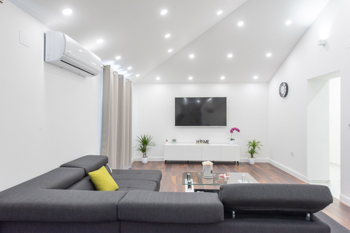 Prostorná vila je rodinná nemovitost jen 10 minut autem ze Splitu, nebo 30 minut autobusem. Sousedství je velmi tiché. Vila se nachází v blízkosti 2 autobusových nádraží a 3 obchodů s potravinami. Letiště a města Trogir, Omiš a Kaštela jsou vzdálena 20 minut jízdy autem. Máme velké bezplatné parkoviště, vyhřívaný bazén o rozloze 33 m2 s proudovým systémem, zahradu o rozloze 1500 m2 se sprchou, světla, gril, Wi-Fi, 75" TV, klimatizaci v každém pokoji, vybavenou kuchyň, dětské hřiště, solární panely. Můžeš ochutnat zahradní ovoce, hrozny, fíky a meruňky.