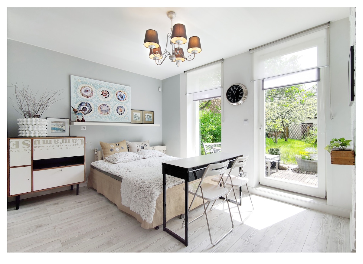 Pěkná malá garsonka se zahradou v Sopotu