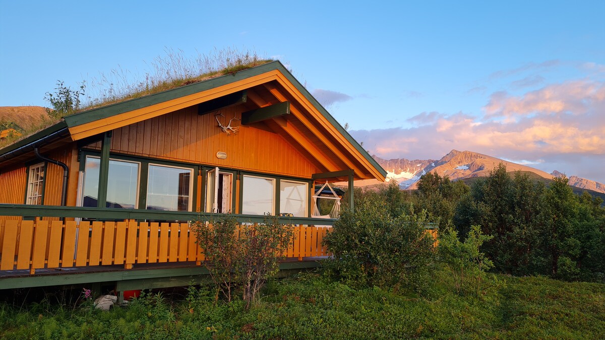Nová chata. Nádherný výh výhled na Lyngenské Alpy!
