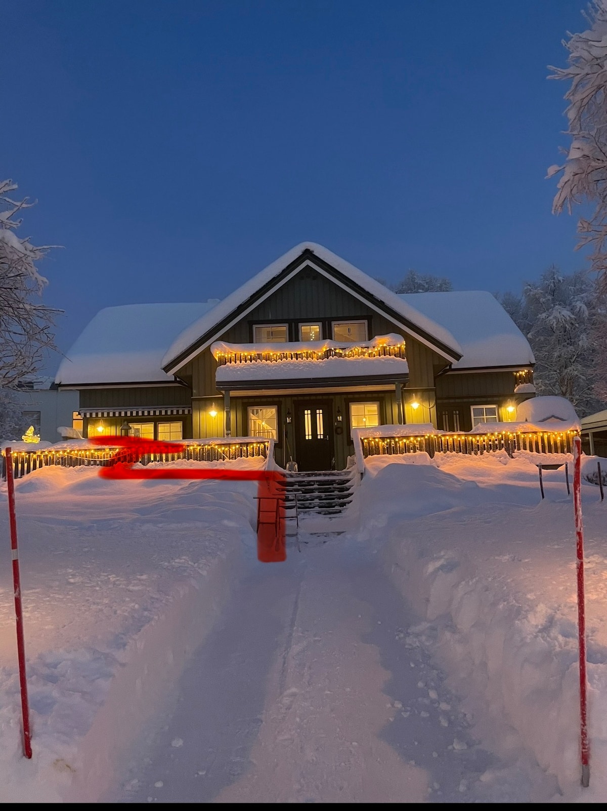 Large newly renovated house approx. 600 m. from the city center, Hurtigruten and grocery store. Large living room and dining table with space for 8-10 people. Well-equipped kitchen, bathroom with shower, and two separate toilets on the 2nd floor. Large veranda with possibility of using gas grill. 3 bedrooms with double beds, possible with two single beds in one of the rooms. 2 bedrooms with 120 cm. beds. One has access via a slightly steep staircase.
