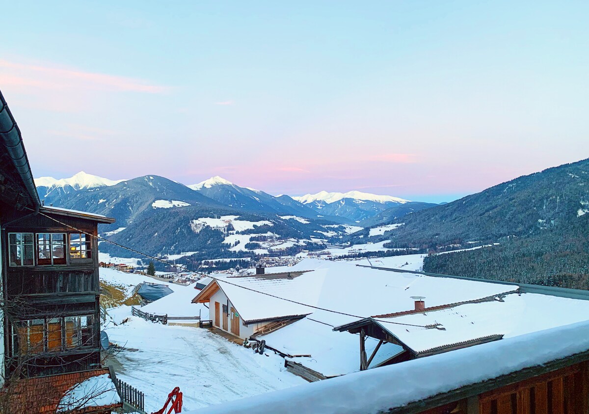 Nedaleko velkých turistických center, jako je Alta Badia a Kronplatz, se naší vesnici podařilo zachovat typický životní styl farmářů, zůstat v kontaktu s přírodou a daleko od provozu a stresu. Byt, který patří k farmě, spravují Genovefa a Franz společně se svými dětmi. Hosté ocení tuto lokalitu pro svou izolovanou polohu a nádherný výhled. Pokud hledáš klid a odpočinek, toto je místo pro tebe. Vítej!