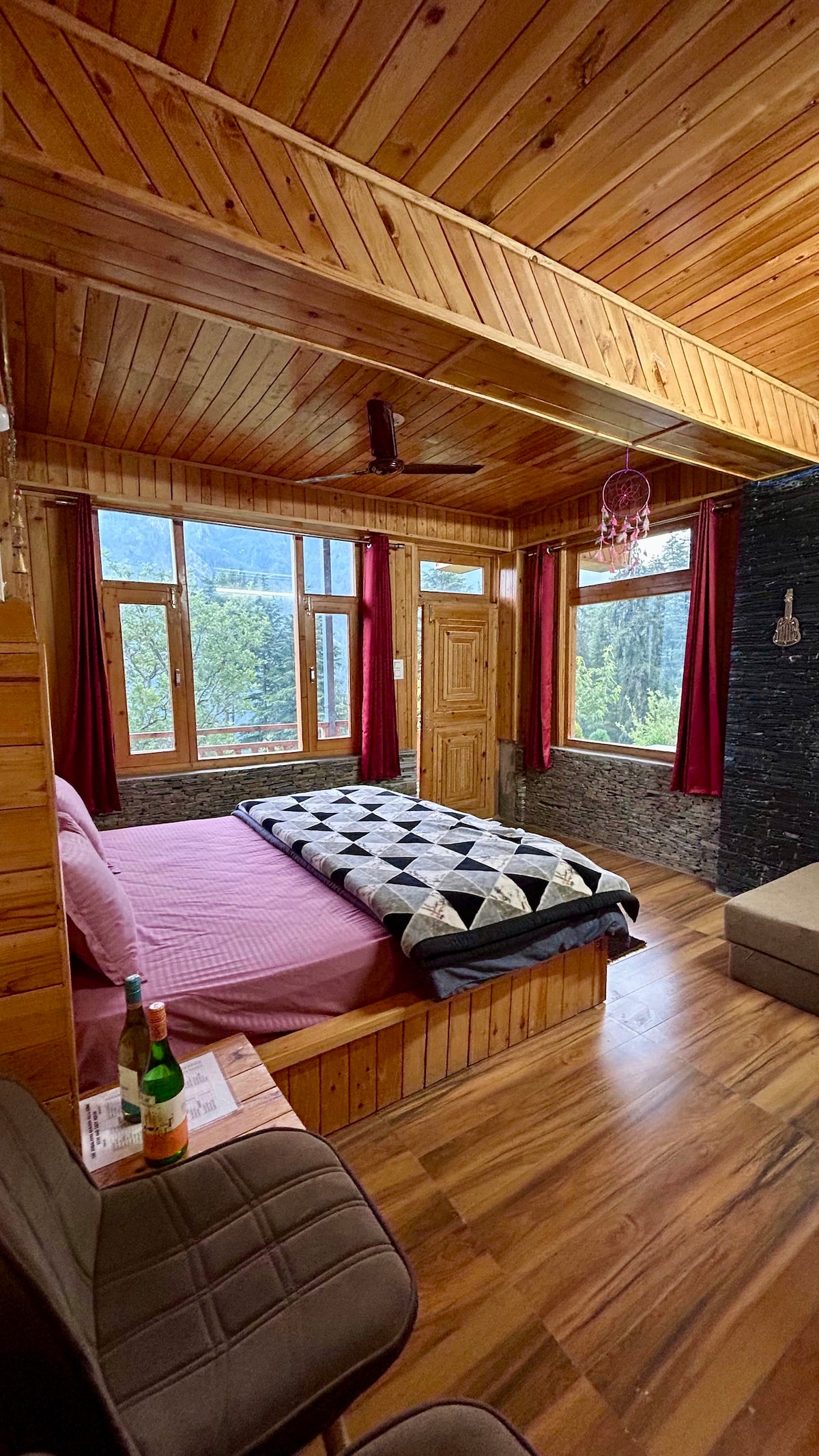 ➡️ Our place is situated at a scenic location with a pine forest in front & an apple orchard in the back. It is a 7-10 minute slightly uphill walk away from the parking. (We'll help with luggage) ➡️ A washing machine, 24×7 hot water & a kitchen with all basic cooking amenities makes this place great for people looking to stay for longer. ➡️ The place feels away from the noisy crowd, but main Naggar is just a 15 minute walk away where you will find many great cafes and restaurants.