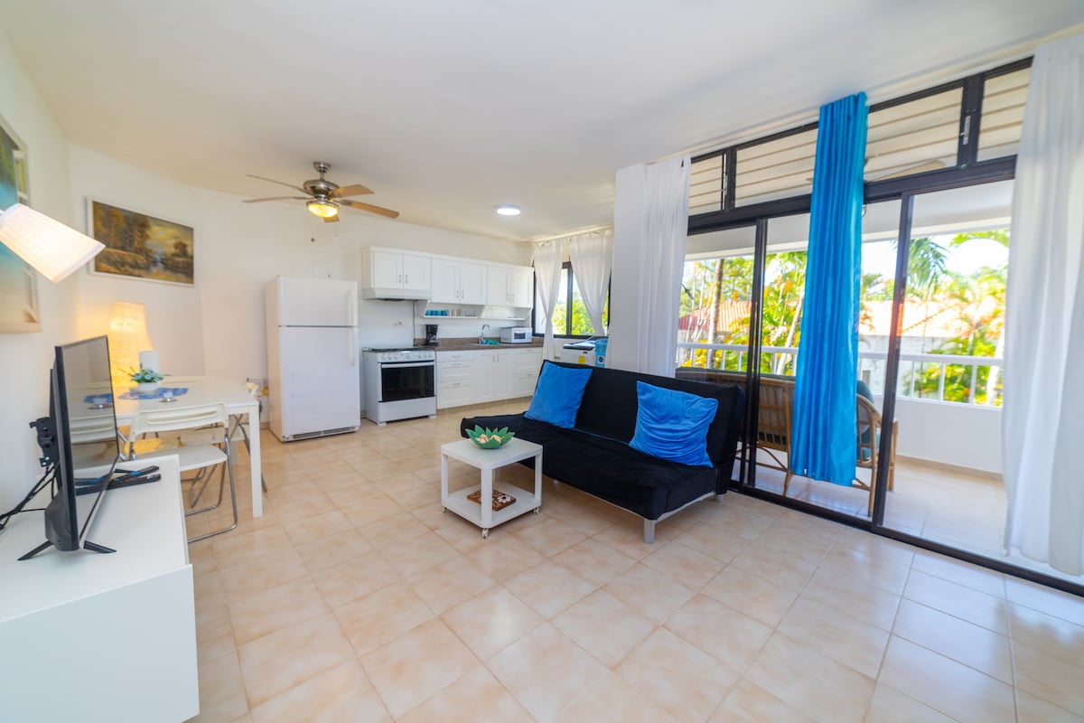 Enjoy the comfort and convenience of this modern 2-bedroom, 2-bathroom apartment just a 1-minute walk from Playa Alicia. Ideal for up to 6 guests, this ground-level unit is perfect for families or small groups looking for a relaxing and central stay in Sosúa.