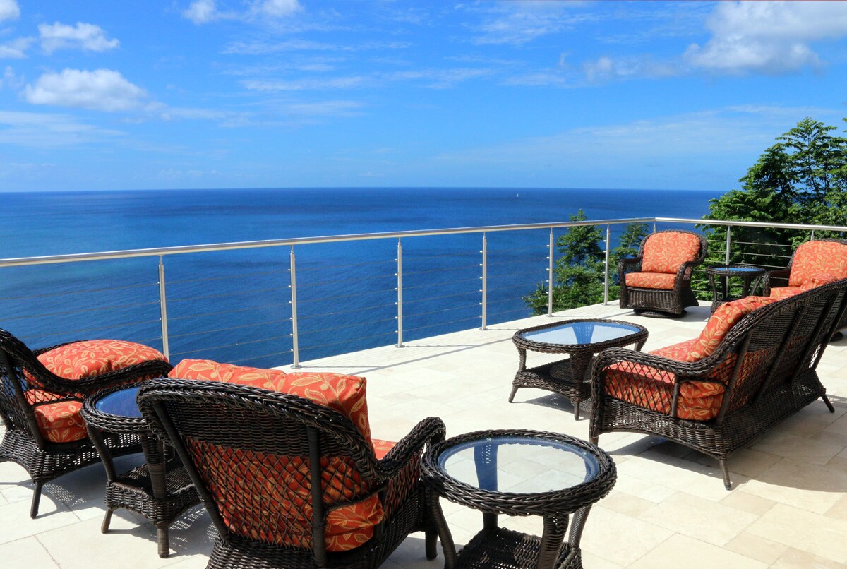 Bez klimatizace Soukromá, prostorná kamenná vila Okna Jalousie Čtyřlůžkový pokoj s manželskou postelí velikosti King Vynikající WIFI Výtvarné umění a nábytek Upravené zahrady Skvělý výhled Túra: Bush Bar 10 minut Dewi's Asian Kitchen 10 minut Vermont Trail, papoušek „Vincy“ Table Rock, Moonmarket, vodopády Three Ponds – 1–2 hodiny Hills above Bush Bar Pohon: Vynikající místa pro šnorchlování 30 minut. Poskytnuto: Ručně vyráběné mýdlo s kokosovým olejem bez parfemace Sůl, pepř Kávu Cafetiere/French press Ručníky