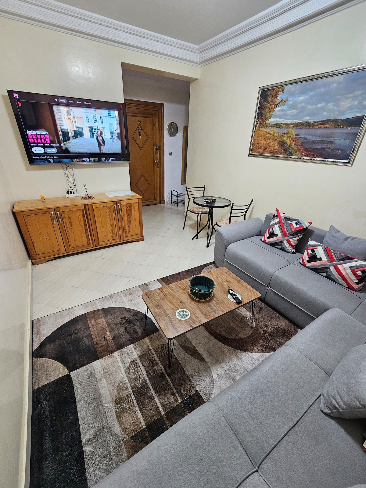 Odpočiň si v tomto útulném domově, jen pár kroků od pláže. Vítej ve svém domově daleko od domova! Tento stylový a lákavý byt se 2 ložnicemi je ideální pro tvůj příští pobyt. Nachází se v bezpečné rezidenci jen 5 minut chůze od krásné pláže Agadir. Nachází se v srdci rušné turistické oblasti, kde tě obklopí místní atrakce, obchody a lákavé restaurace.