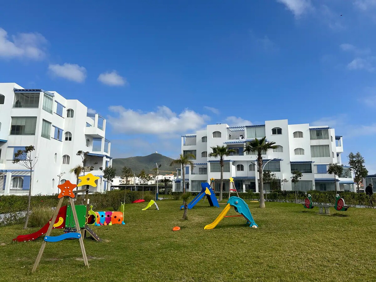 Vítejte v našem zcela novém a okouzlujícím apartmánu v klidném a zabezpečeném komplexu "La Perle de Cabo", který se nachází v nejluxusnější čtvrti Cabo Negro, jen 5 minut jízdy autem od pláže Cabo Negro a pláže Martil. Náš apartmán je velmi dobře vybaven a má terasu s výhledem na zahradu a bazén. Přijeďte a užijte si nezapomenutelnou dovolenou v tomto krásném apartmánu, zařízeném s velkým vkusem. • Parkování je k dispozici (zdarma a zabezpečené 24/7).