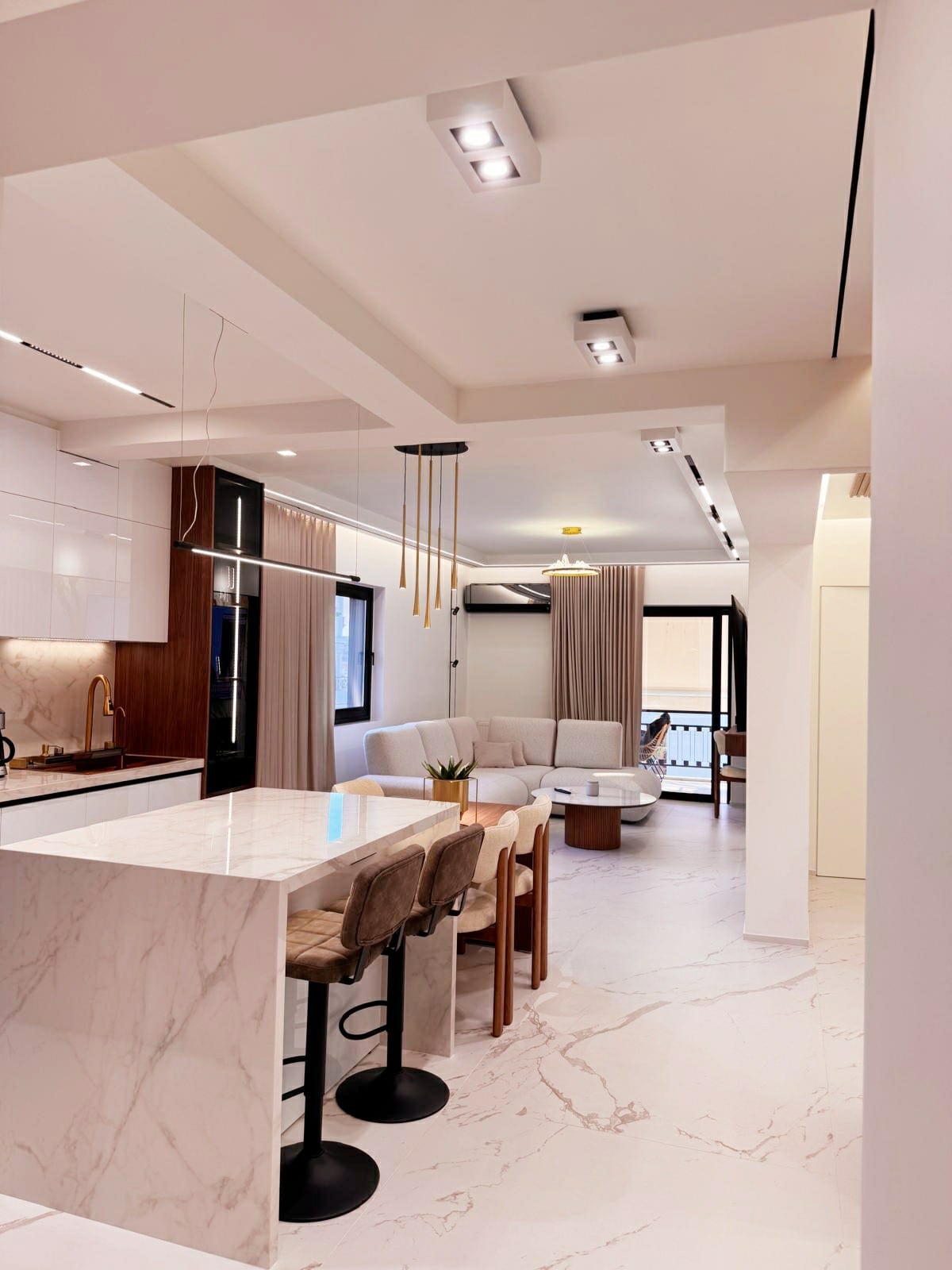 EcoStay -"Celebrity" luxury business class apartment by the sea. Brand new apartment 82 sqm just 1min.from the beach and marina Alimos. Navrženo vkusně profesionálním interiérovým designérem. It offers all the facilities : Gaz heating,Hi speed optical Internet,Smart TV's,smart Air conditioningers ,Stylish wood marble bathroom, hygiene shower + hot water,and many other. Restaurace,supermarket,farmářství,banka a bankomat za 1 minutu chůze přístav 2 minuty chůze Přístav Pireus 9 km daleko Akropolis 7 km letiště 25 km
