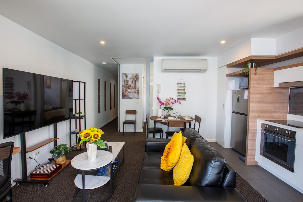 Stylish 1 bedroom unit. Very comfortable queen bed with high quality linen, 2nd TV in bedroom. Office space with an expandable desk, monitor is available, 5G internet provided. If you are planning a big night out then we are close to everything. If you are looking for a lazy lie in then coffee/tea, cereal & toast are provided so you can laze a little. For those balmy summer nights additional dining area on the balcony. Parking not available in the building, however parking available next door.