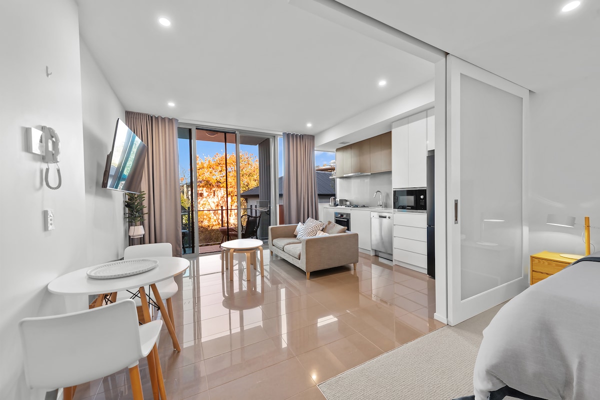 Bedroom opens on to living room with floor to ceiling glass sliding doors, opening out to a large & usable balcony; Comfy lounge, Wi-Fi, Netflix; Combined Air Cooling & Heating; Well appointed kitchen; Modern bathroom with rain head shower & hair dryer; Laundry including washing machine & dryer; Easy self check-in any time via lock box; There is no designated car park, but there are plenty of visitor car spaces which are available most of the time.