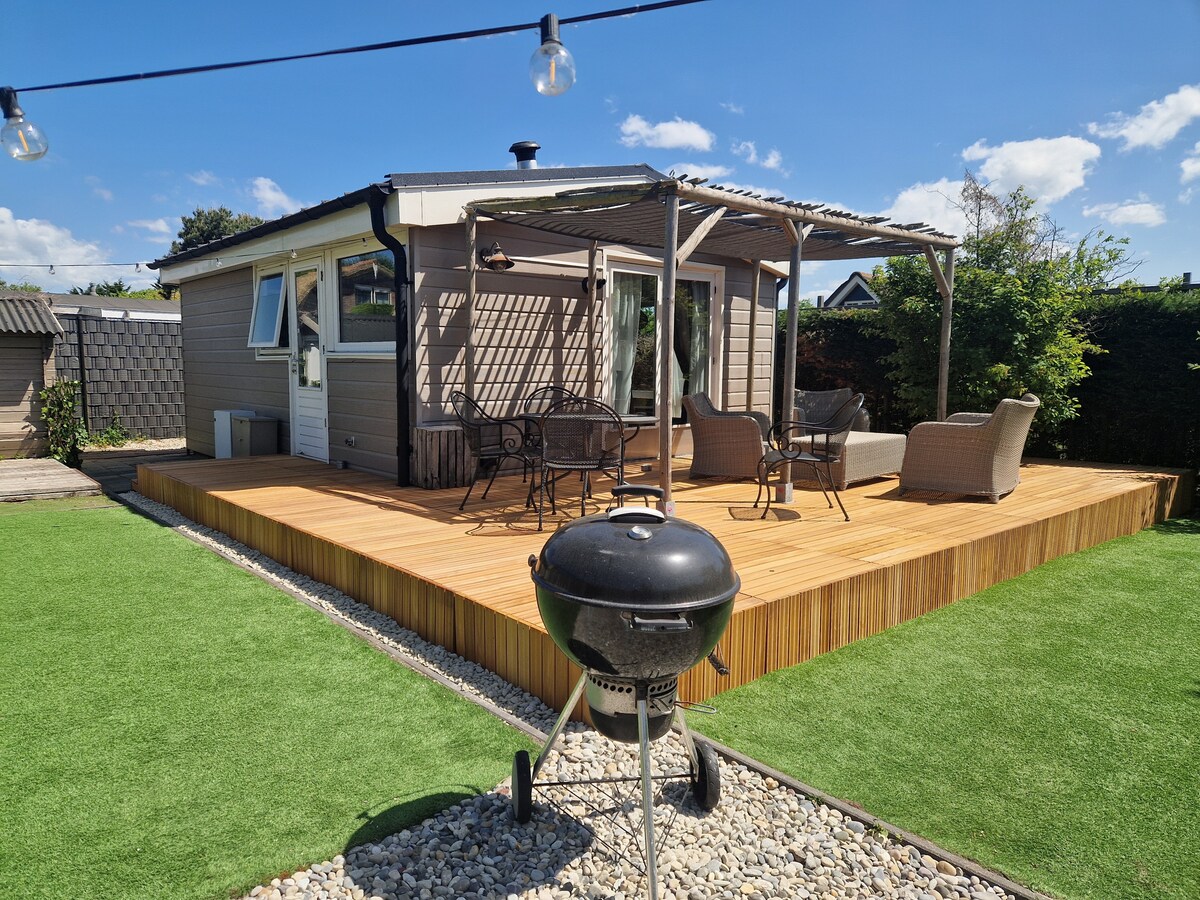 Užijte si náš útulný rodinný bungalov 35m2 s velmi prostornou "odlehlou" zahradou se nachází na okraji lesa a duny s mořem 900 m daleko. Vhodné pro rodiny (s dětmi), páry a max. 2 psy. Pokud se chcete dostat pryč od všeho shonu a shonu, můžete relaxovat a užít si zde. Boulevard, restaurace a obchody jsou asi 4 km daleko od Bungalovu. Bungalov je v tichém rodinném parku, takže není vhodný pro večírky a mládežnické skupiny.