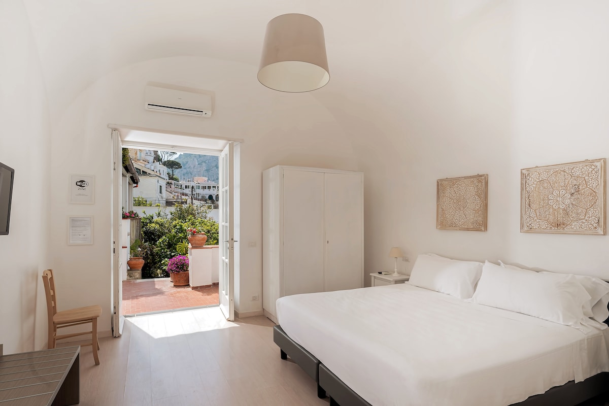 Jen 2 minuty chůze od slavného náměstí Piazzetta di Capri, nervového centra ostrova Capri! Suite "The Sea" is an elegant sea view suite on two levels of 40 m2 with all comforts in the center of Capri, with ancient vaults framing its architecture and contemporary art installations, HD and 4k TV with Netflix access From the magnendid terrace you can enjoy the view of the Marina Piccola bay and the famous Piazzetta of Capri, known as the living room of the world!