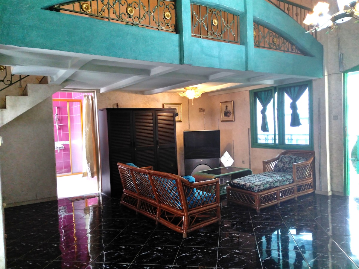 Bali in jakarta 80 sqm loft overlooking a tropical garden and swimming pool Loft composed of a large bedroom area and a living room area (5 seater sofa) and a private large bathroom (12 sqm) Enjoy the swmming pool and relax after a day of visit or work