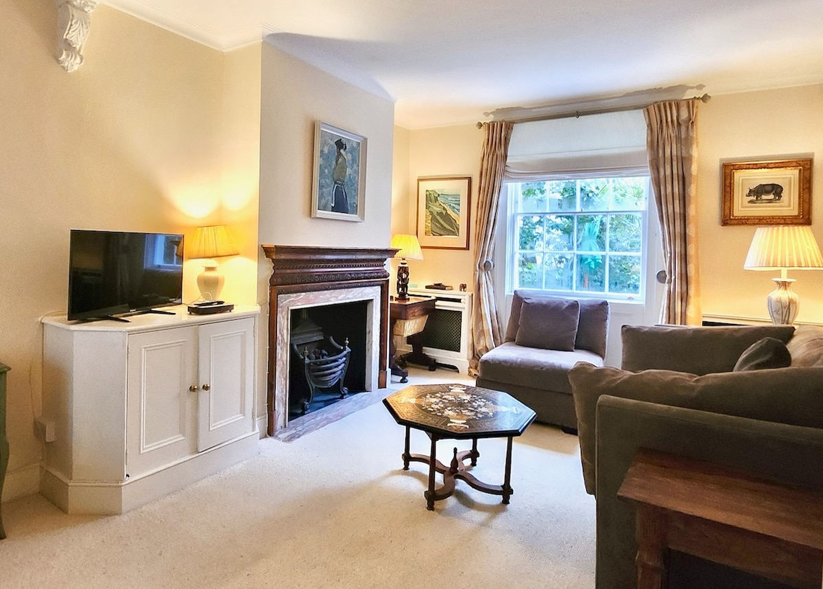 Beautifully presented authentic Georgian Chelsea house on a charming quiet street in Chelsea, with rear west-facing garden. Set on 4 floors, furnished with period features. 2 double bedrooms, 2 bathrooms, dressing room with standing bath + shower, 2 reception rooms, 1 study. Fully serviced kitchen opening to garden conservatory. Fiber internet and TV. Available to max 4 guests. Price intended for 4 guests and 2 bedrooms occupancy. Available at reduced rate for single or one room stay.