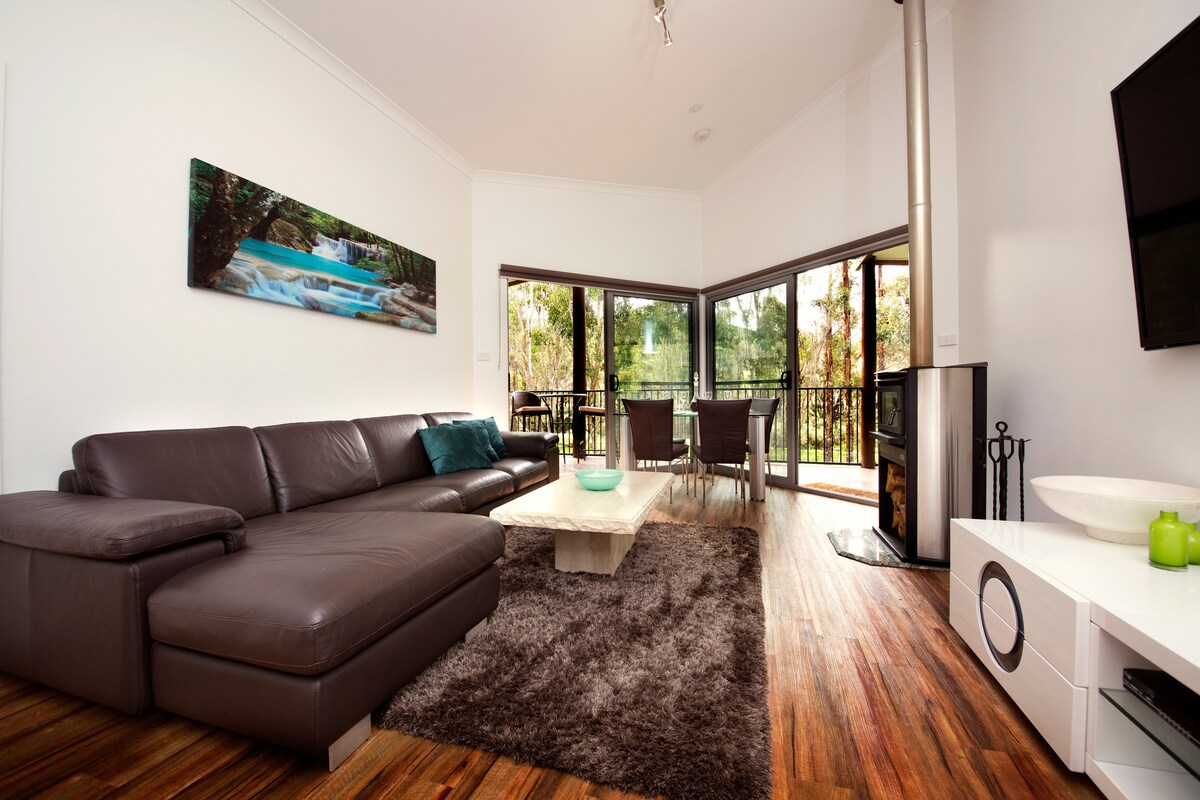 Ubytování na farmě zasazené v malebném údolí podél řeky Blackwood. 790 hektarů bujných kopců, jedinečných bušů a divoké zvěře. Místo k odpočinku, relaxaci a sledování pastvy dobytka obklopující chatu Cleves. Vaše vlastní malé útočiště uprostřed přírody. 100% mimo síť a ručně vyrobené z recyklovaného dřeva z farmy. Zpomalte a zažijte jednoduchý život na venkově. Sledujte nás na @cleves_hut