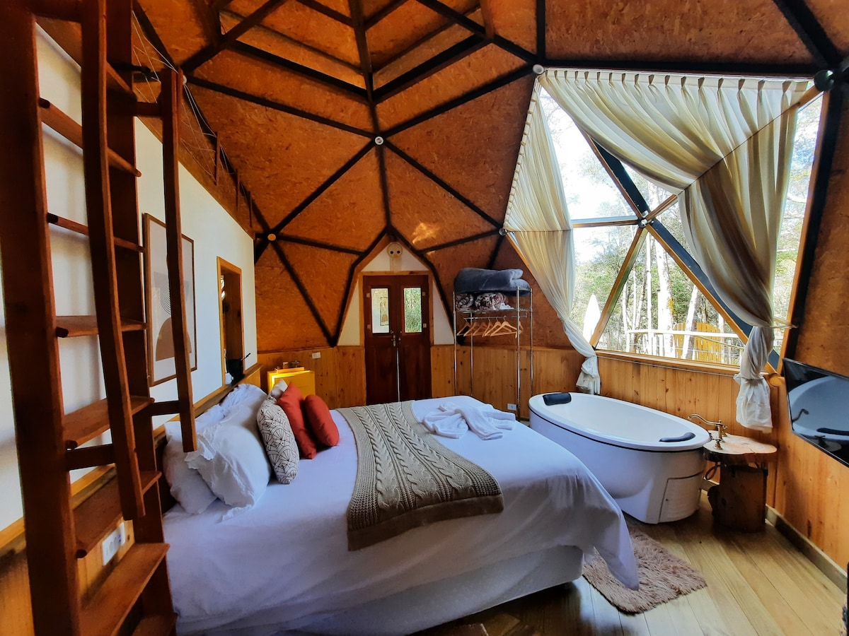 Viva uma experiência inesquecível em um domo geodésico com jacuzzi privativa e vista panorâmica! O SkyDomo é um refúgio totalmente exclusivo, perfeito para casais que buscam descanso, romance e conexão com a natureza em um cenário único. ✔ Jacuzzi privativa com cromoterapia ✔ Telão de cinema de 150” com projetor para noites de filme ✔ Silêncio absoluto e privacidade total ✔ Opções de refeições entregues na acomodação Tudo pensado para você sair da rotina e criar memórias especiais!