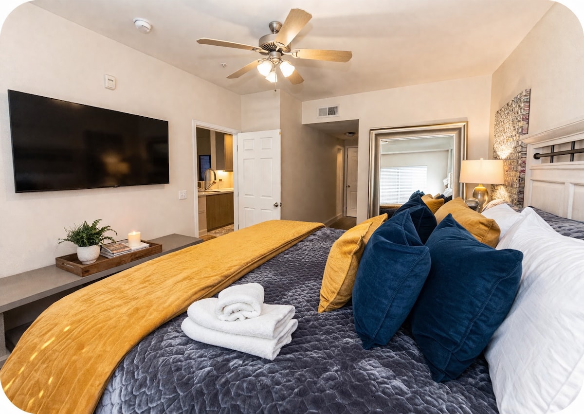 Vstupte do klidného útočiště v The Queen's Hamlet, jednopokojovém bytě s garáží poblíž Texas Medical Center a Rice University. Tento promyšleně navržený prostor je určen k relaxaci a nabízí vybavení zaměřené na wellness, včetně čističů vzduchu, aromaterapie, ohřívače ručníků a budíku s bílým šumem, který zajistí klidný spánek. Dopřejte si péči o sebe s přírodními koupelovými produkty a solí, které vytvářejí zážitek podobný lázním v pohodlí vašeho domova daleko od domova.