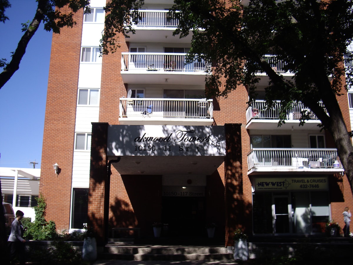 Just off Jasper Avenue, well equipped one bedroom hi-rise with Amazing View, Close to Ice District & Brewery District. Steps from excellent nightlife-restaurants-pubs-Earls & Rogers Place Arena, City Market, London Drugs, Shoppers and so many restaurants and shops, enjoy one of the few suites with, Gym & Free parking Quality sheets, top-notch beds and all furnishings, Crave on both TVs. Private balcony to watch the beautiful sun sets and sparkling night lights Check in before 9pm Pool is closed