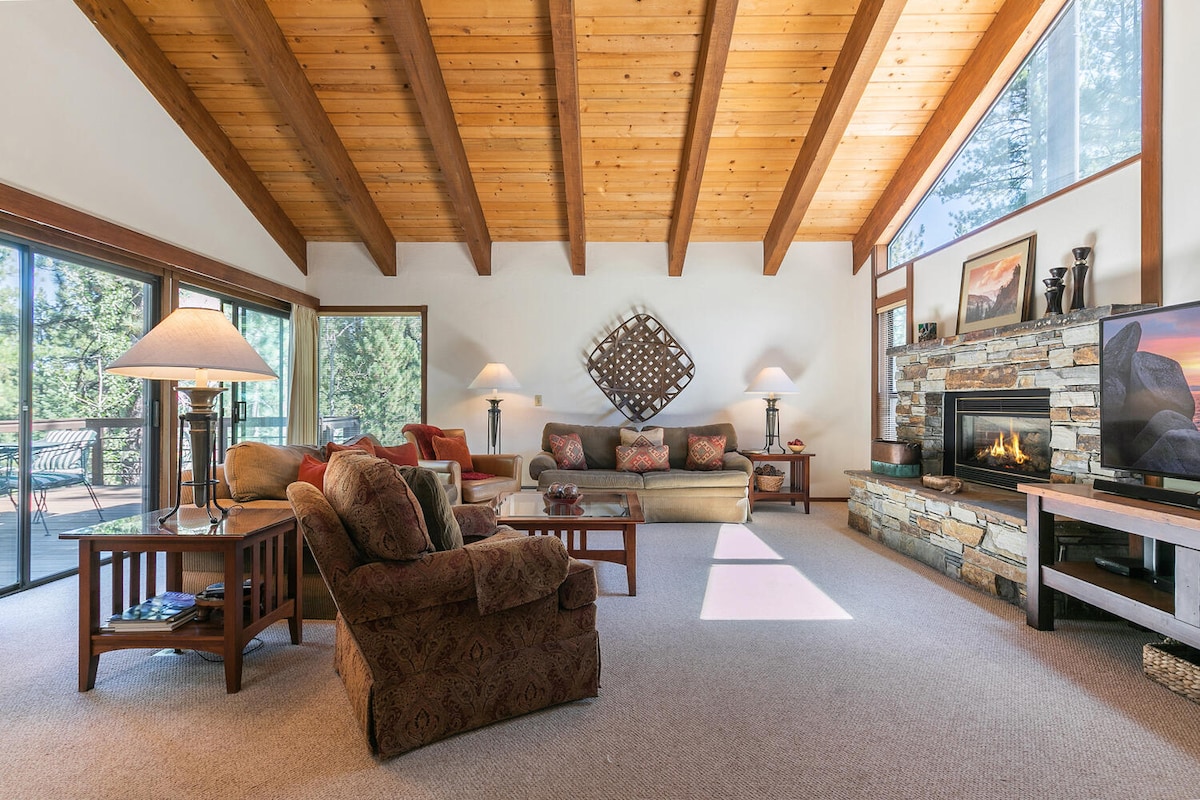 Zažij nezapomenutelnou rodinnou dovolenou na horách v našem rekreačním domě Northstar na Basque Drive. Náš dům, který se nachází mezi vysokými borovicemi, je dokonalým útočištěm. Velký pokoj v přízemí se může pochlubit klenutými stropy, které spojují eleganci interiéru s krásou venkovního prostředí. Vyjdi na terasu, kde tě obklopí pohoří Sierras. Plynový gril, pohodlné posezení a výhled na údolí Martis Valley tě vyzývají k relaxaci. Tvůj horský pobyt čeká – rezervuj si ho hned teď a vytvoř si vzpomínky na celý život