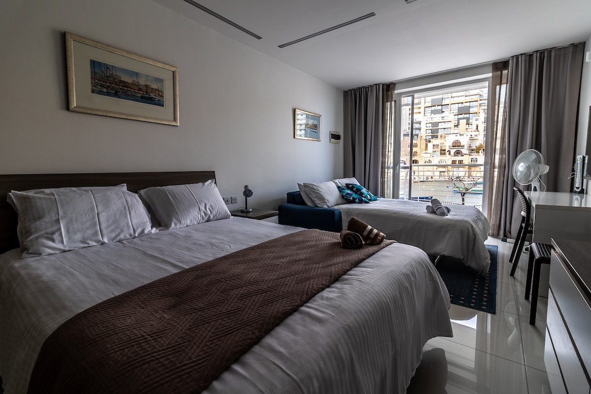 Průměrné hodnocení 5 z 5, 6 hodnoceníLuxusní apartmán s výhledem a bazény v Paceville