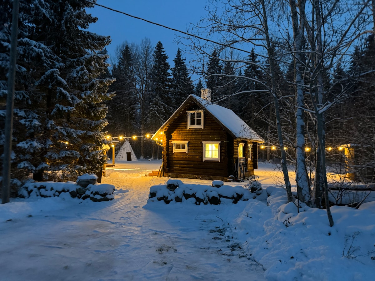 Srub Vesihobu se saunou u řeky