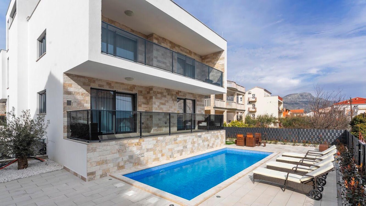 Luxusní vila Oriolus, vyhřívaný bazén, sauna, Split