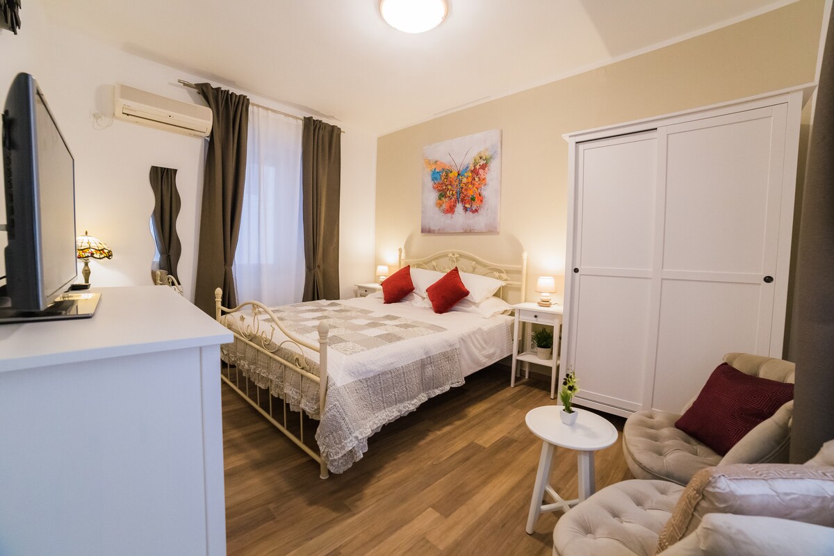 Představ si, že spíš v srdci starobylého paláce postaveného ve 4. století, aniž bys na něj musel/a koupit lístek, je to úžasné, že? Byt se nachází uvnitř slavného Diokleciánova paláce pod ochranou UNESCO. Skládá se z kuchyně, jídelny, toalety a dvou prostorných ložnic, z nichž jedna má balkon pro poslech nočních rozhovorů o tomto krásném městě. Bez ohledu na to, pokud se chceš pobavit na pláži a na večírku nebo navštívit historická místa, vše je jen pár kroků od ubytování
