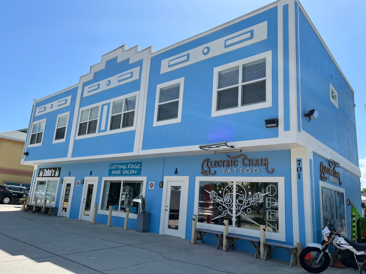 Přidej moji nemovitost do svého wishlistu kliknutím na <3 v pravém horním rohu! *Rezervujte 2 noci, získejte 3. noc 30% slevu!* >100 kroků na pláž! >Soukromá terasa v patře pro lenošení + výhled na oceán! >Pes přátelský k poplatku za domácí mazlíčky (pouze jeden pes) >Kompletně vylepšený interiér >Kávovar na překapávanou kávu >Pohodlná manželská postel >Murphy Bed může být uzavřena, aby se uvolnil prostor navíc >Jídelna >Kompaktní pračka/sušička >Chytrá televize + Wifi > Pouze Netflix + Hulu >Plážová křesla + plážové osušky pro dva