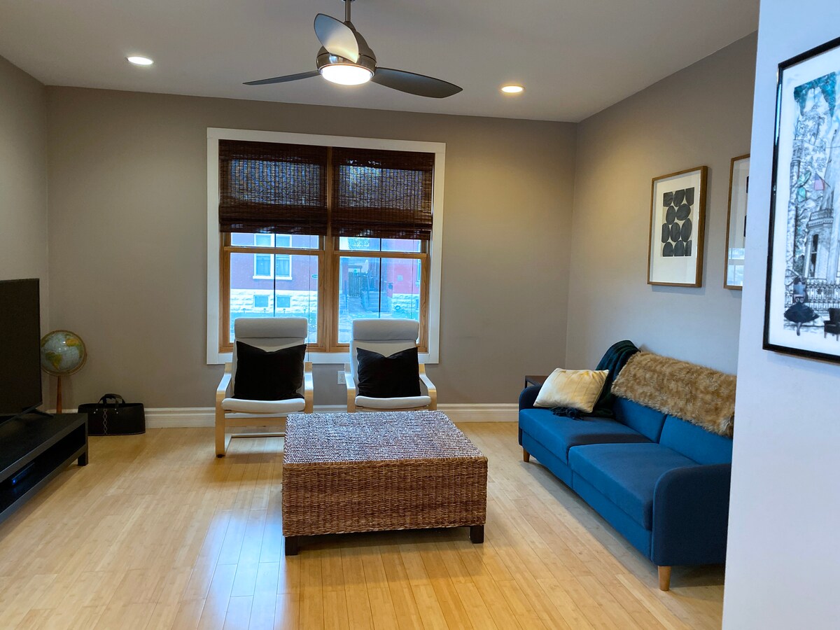 Stylová 3lůžková jednotka se 2 koupelnami v historicky zrekonstruovaném domě (2025) v centru města: dobře vybavená kuchyň včetně kávovaru Delonghi Dinamica, což z ní činí ideální místo k pobytu při objevování toho nejlepšího, co St. Louis nabízí! Pěší vzdálenost do Forest Parku (zoo, golf, muzea), obchodů, restaurací, divadel, lékařských center atd. Kvalitní nábytek a ložní prádlo: Restoration Hardware, Pottery Barn, Arhaus a starožitnosti pro pohodlný pobyt daleko od domova. Bezplatná nabíječka Tesla úrovně 2