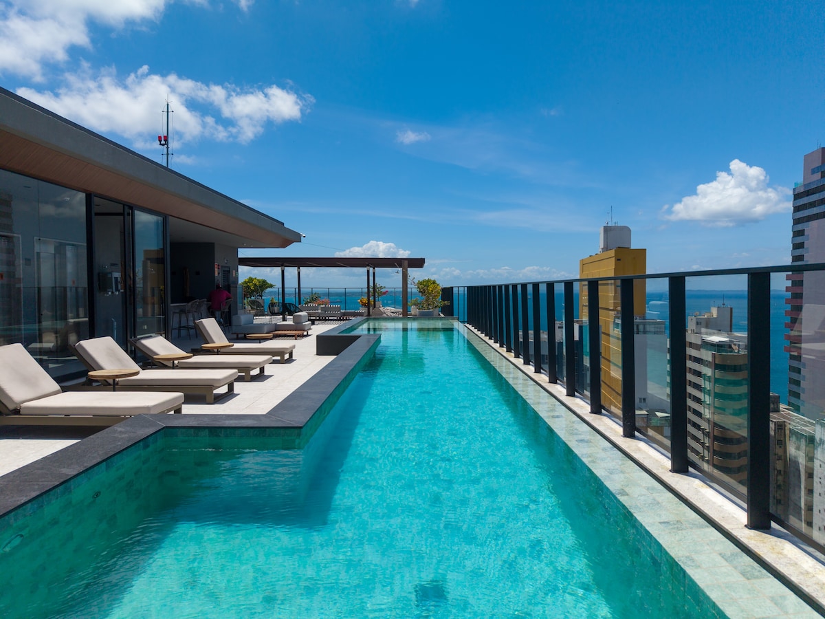 Toto jedinečné místo má svůj vlastní styl. Luxus a exkluzivita udělají z vašeho pobytu v Salvadoru nezapomenutelný zážitek. Ideální pro vodní turistiku. Apartmán naproti přístavu Bahia Marina a námořnímu centru Salvadoru. V okolí je možné projet se na lodi, motorovém člunu, vodním skútru, zkoušet kanoistiku, paddleboarding atd. V blízkosti nejlepších restaurací v Salvadoru, hlavních muzeí města a nedaleko historického centra a centrálního karnevalového okruhu.