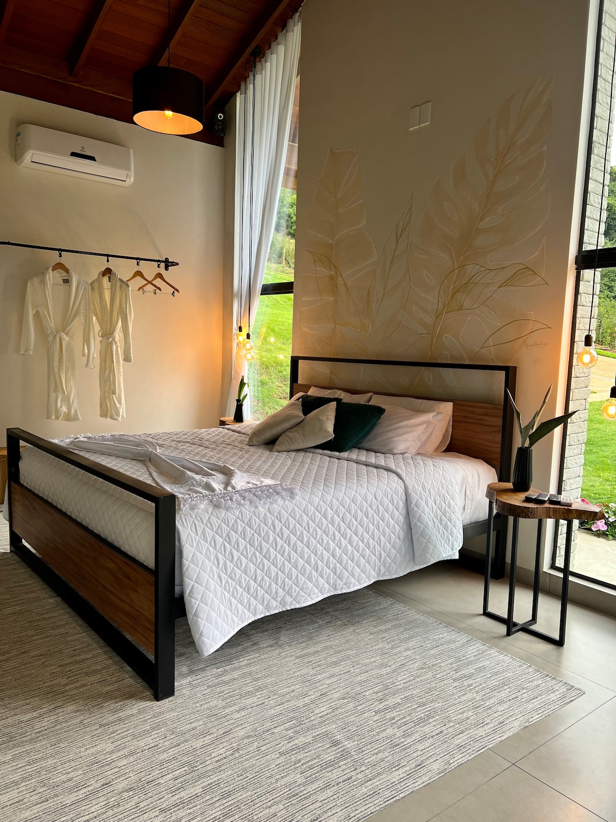 • Apartmá Queen v horách Moeda obklopené lesem• Estância Ferreira je místo pro pořádání akcí, nacházíme se uprostřed lesa. Tento apartmán je vhodný až pro 2 osoby a nabízí pohodlí a vybavení, jako je minibar, klimatizace, kávovar Nespresso, toaletní potřeby Natura Ekos, ložní prádlo a ručníky Buddemeyer. Kromě toho nabízíme snídaňovou sadu v ubytovacích zařízeních, která je zahrnuta v denní sazbě.