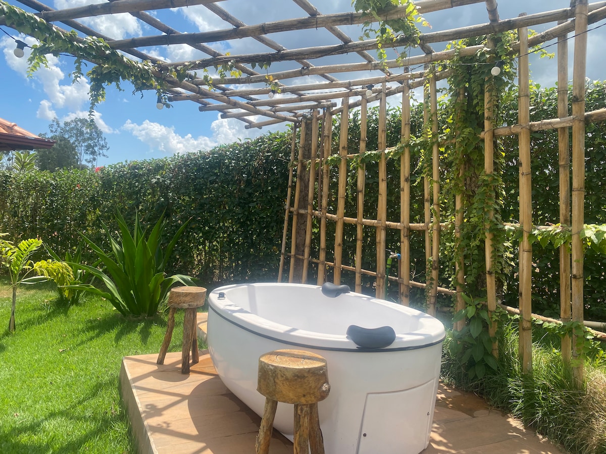 Zažijte jedinečný zážitek! Tato chata, která kombinuje rustikální a sofistikovaný styl, je ideálním prostředím pro luxusní ubytování uprostřed přírody. Kromě útulného prostředí nabízí nekonečný výhled na hory, ideální pro romantické chvíle ve dvou. Venkovní kino, houpací síť, z které si můžete užívat tento neuvěřitelný výhled, gril a ohniště. Vychutnejte si vanu s krásným západem slunce nebo pod hvězdami, stejně jako dvojitou sprchu s výhledem na hory.