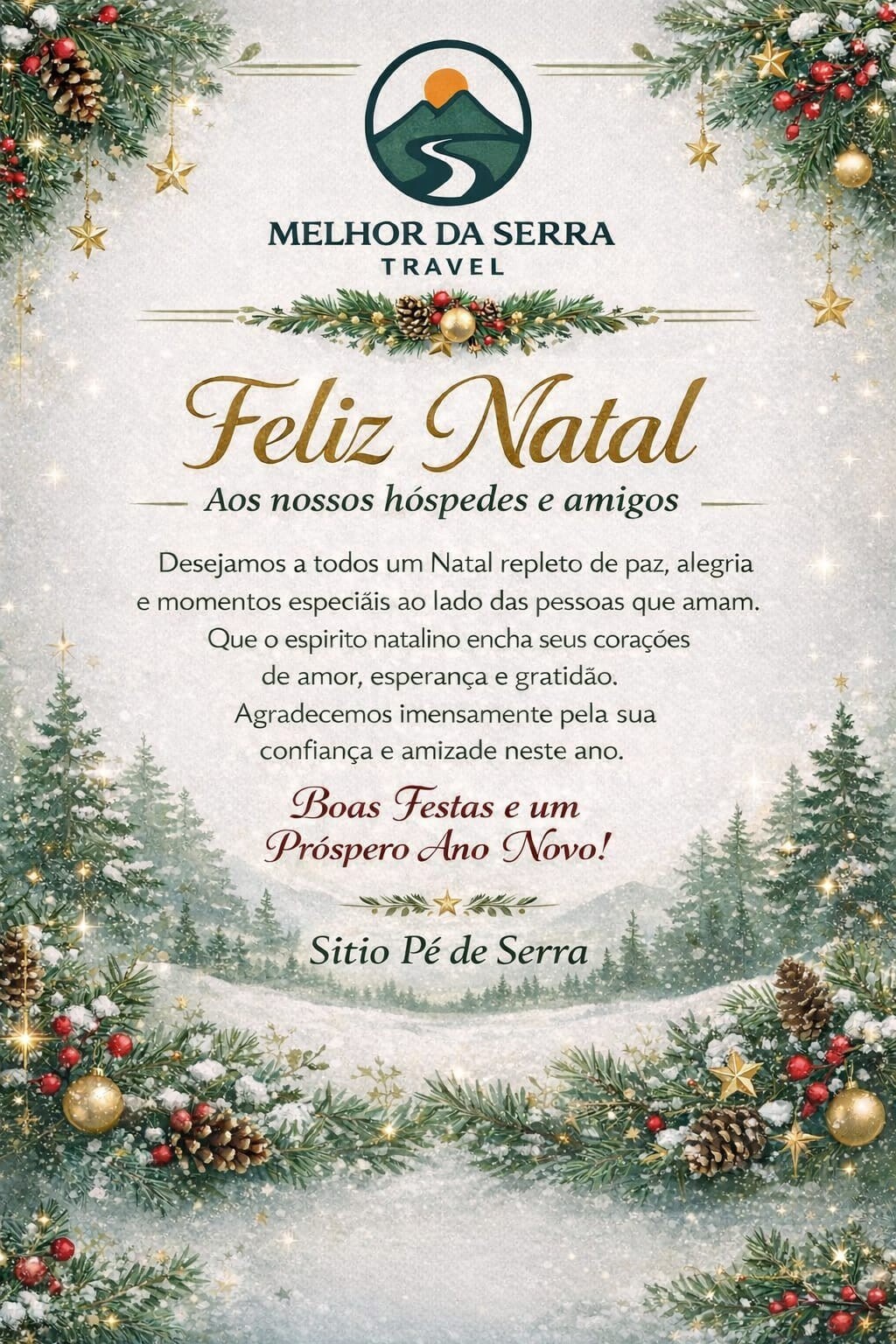 Sítio Pé de Serra je ideální destinací pro ty, kteří hledají klid, volný čas a autentický zážitek na venkově. Dům je rustikální, útulný a vybavený 3 ložnicemi, dvěma koupelnami, televizní místností, krbem, jídelnou, velkou kuchyní, gurmánským salónkem s bazénem, totemem, grilem, pecí na pizzu a kamny na dřevo. Dům má WI-FI se satelitním internetem, který zajišťuje připojení i uprostřed přírody. Venkovní prostory jsou kompletní, s bazénem, lehátky, stoly s ochranou před sluncem, ohništěm...