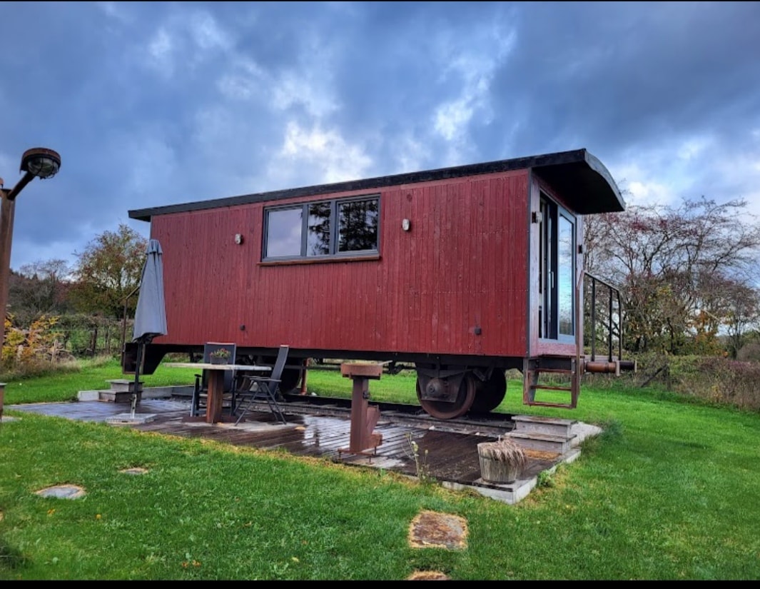 Rustikální mini domek z autobusu na farmě v Bedfordu