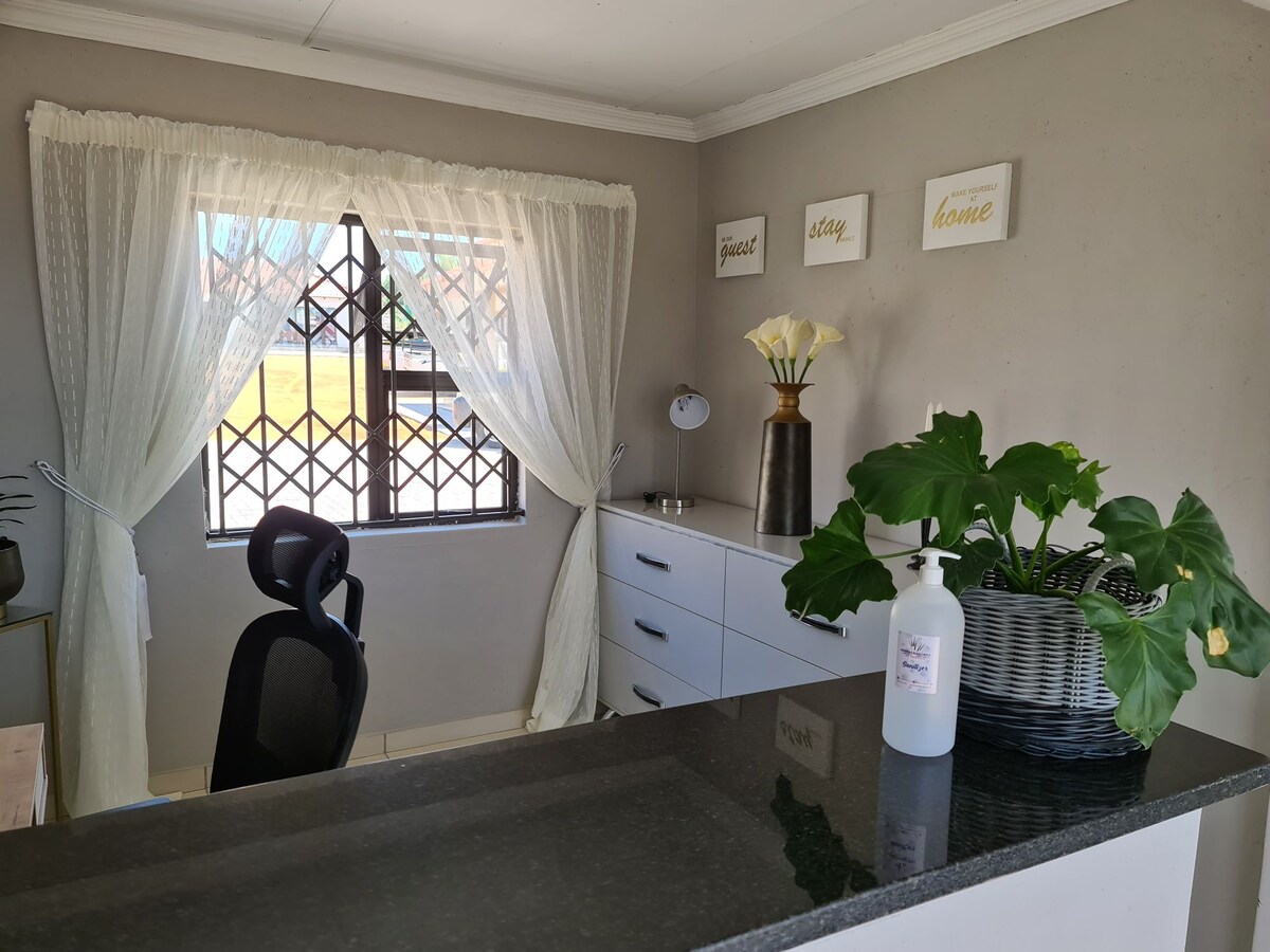 Tento nově zrekonstruovaný jednopokojový byt je ideální pro každého, kdo cestuje za prací, nebo pro pár, který potřebuje na víkend odpočinout od shonu. Tento bezchybný apartmán s vlastním stravováním se nachází v okouzlujícím městě Dullstroom v Mpumalanga. Užijte si nádherný víkend! Prozkoumejte tuto malebnou a nádhernou oblast ve dne a v noci si odpočiňte u dobré knihy a sklenky vína vedle praskajícího krbu.