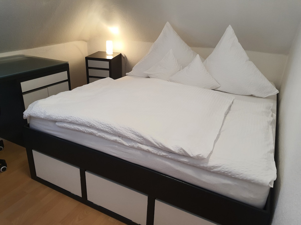 3 1/2 pokojový byt s balkonem 1. patře, s bezplatným Wi-Fi v klidné lokalitě v části Duisburg-Hochheide – na hranici s Moersem. Má kuchyň, koupelnu, pracovnu, obývací pokoj a ložnici, stejně jako skládací postel. K dispozici je satelitní TV s plochou obrazovkou, rádio, lednice, mikrovlnná trouba, kávovar, varná konvice a vařič vajec. Ložní prádlo a ručníky jsou k dispozici. Parkování je zdarma.
