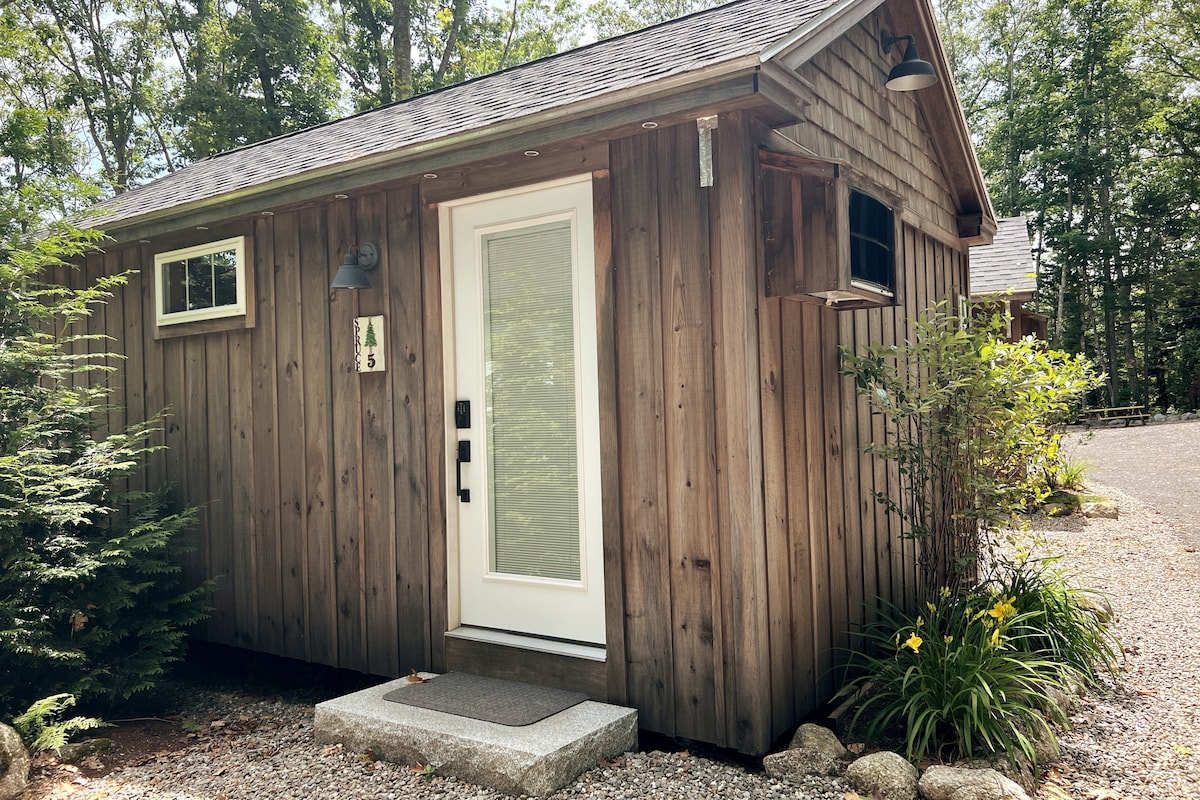 Escape to our cozy eco-modern tiny cabin in Midcoast Maine — a romantic hideaway designed for couples. Nestled among cedar trees, this retreat features a queen bed, private bathroom, kitchenette, and outdoor seating with Adirondack chairs. Share evenings by the firepit, unwind together in the cedar sauna, or walk hand-in-hand to Sandy Point Beach just 0.5 miles away. With Belfast, Camden, and Acadia nearby, Cabin 5 is your intimate Maine getaway.