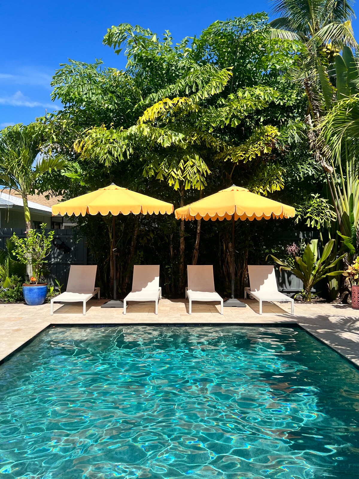 Toto klidné, luxusní studio se soukromým vchodem je plně zařízené, má krytou terasu a výhled na oplocený dvorek, který zahrnuje tropické ovocné stromy a chickee chatrč. Nachází se v Naples Parku, v blízkosti dvou veřejných pláží a kousek od Mercata, luxusního komplexu se smíšeným využitím, kde najdete obchod Whole Foods Market a mnoho malých obchodů, restaurací a barů. Nově zrekonstruované, se sprchovým koutem bez prahu, vyhřívaným věšákem na ručníky, bidetem, vysokorychlostním Wi-Fi, počítačem, TV a plně vybavenou kuchyní.