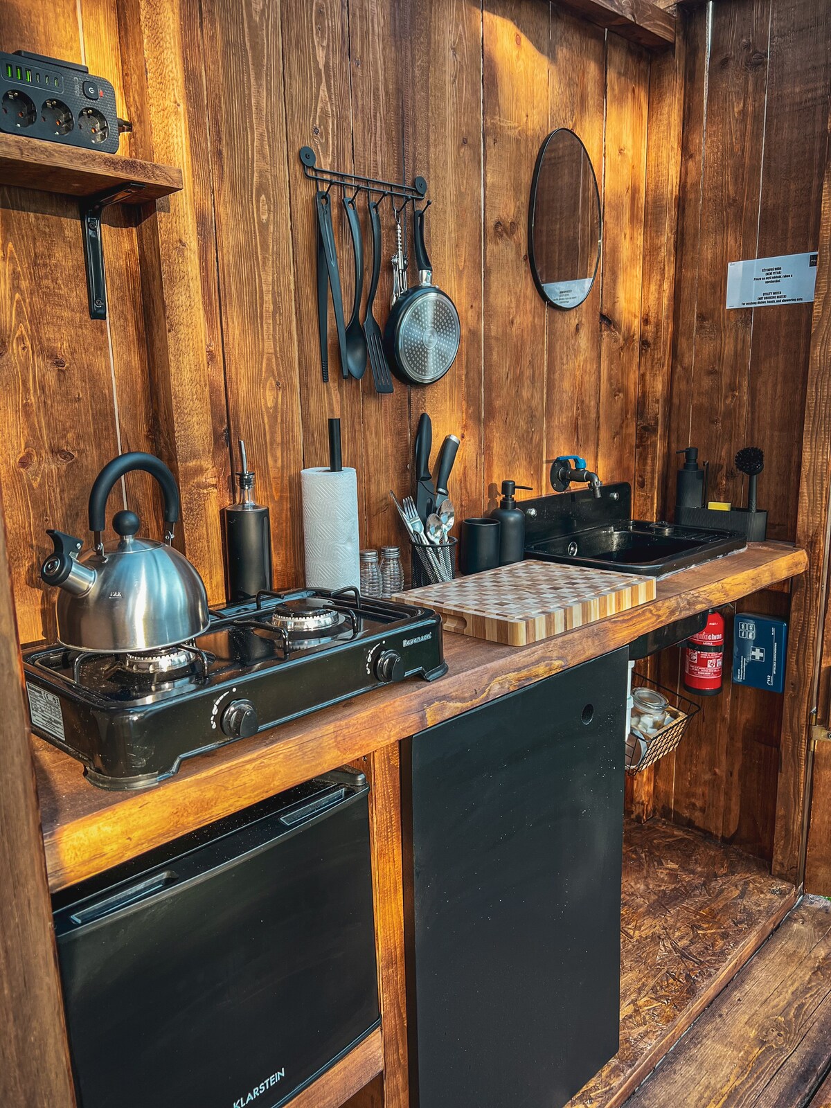 ZIMNÍ REŽIM: V zimních měsících je vypuštěný vodní systém (bez tekoucí vody). K dispozici je pitná voda v kanystrech a vnitřní kempingová tlaková sprcha. Tiny house je vytápěný, vhodný i na zimní pobyt. Ideální pro páry nebo sólo retreat. Tiny house je plně soběstačný – elektřina ze solárů, topení a vaření na plynu. Pokud hledáte netradiční, klidný a vědomý Silvestr, tohle místo je pro vás. Rádi vám pobyt přizpůsobíme a vše předem vysvětlíme.