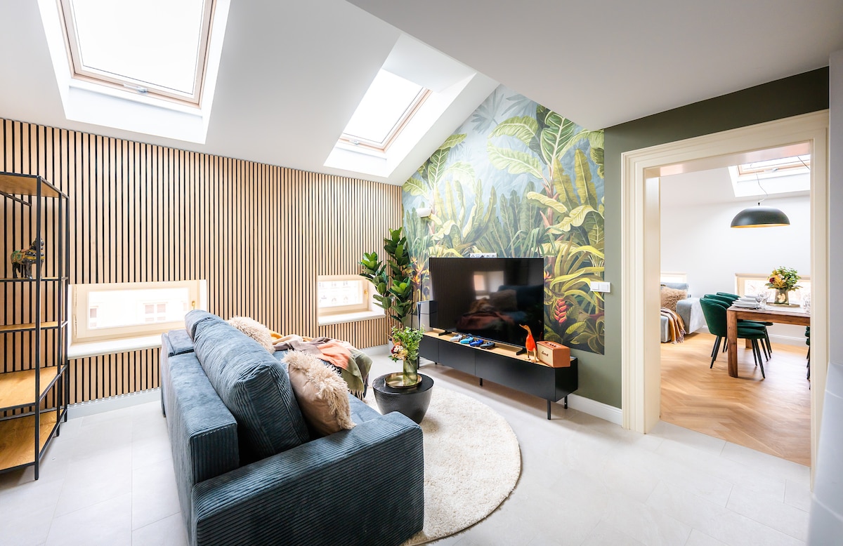 Discover a spacious apartment perfectly located near the Charles Bridge, with various tram lines just around the corner, and nestled between beautiful parks on one side and a stunning riverside with island access on the other. This ideal Airbnb spot is surrounded by amazing local businesses that will captivate you. Learn more about them in our guidebook.