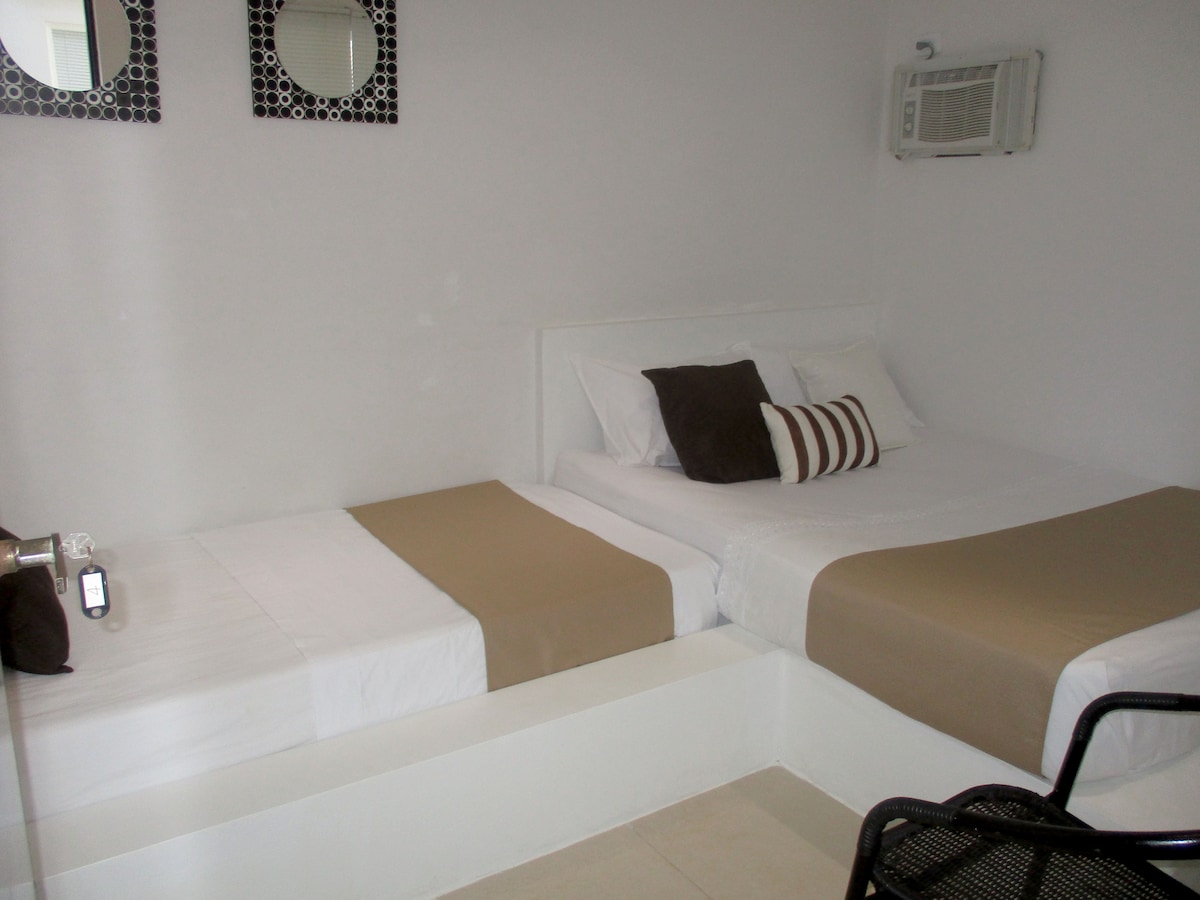 Habitación de 7,5m2, dotada con cama doblede 1,4mde ancho, 4 almohadas, con su respectiva lencería y una toalla de baño por huésped, aire acondicionado y ventilador, agua 24h (no potable), wifi, acceso todas las zonas sociales del hostal, cocina y nevera social. El desayuno y la limpieza de la habitación incluidos. Además cuenta con un baño privado interno, en el que encontrarás papel higiénico y un jabón liquido de delicioso aroma.