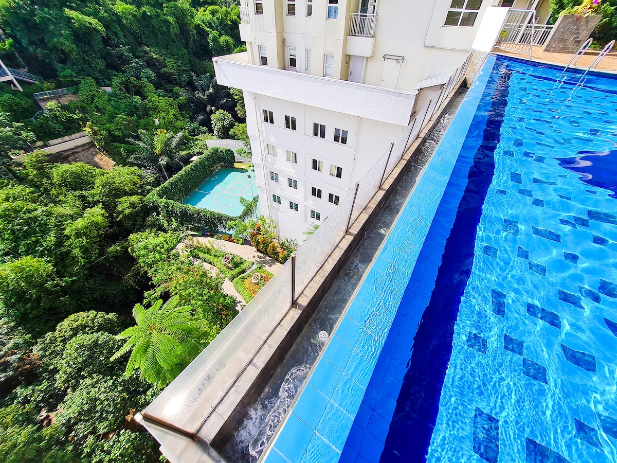 Vítejte v Imahku v Bandungu, první volba pro ubytování u rodiny! Nacházíme se na ulici Cihampelas, jen 8 minut chůze od nákupního centra Ciwalk. Vychutnejte si nádherný výhled na město z 20. patra ze své ložnice a obývacího pokoje. Naše vybavení👇👇 Užijte si prostorných 36 metrů čtverečních pro až 4 hosty! ❥ Hlavní ložnice s manželskou postelí a výhledem do lesa ❥ Obývací pokoj s rozkládací pohovkou, výhledem do lesa a na město ❥ 2. ložnice s jednolůžkem ❥ Balkon s výhledem na les a město ❥ Kuchyňský kout ❥ Koupelna