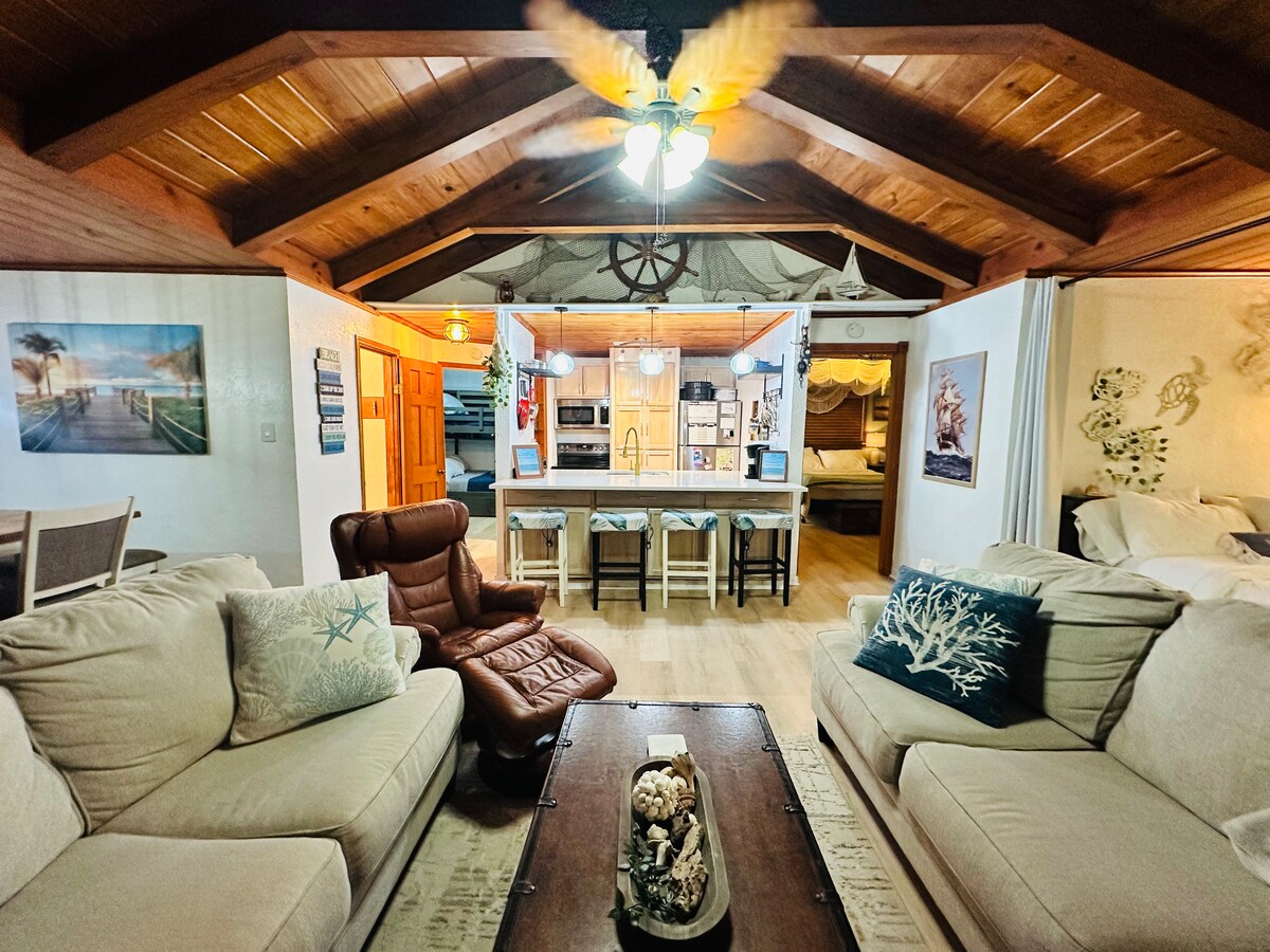 Jsme zkušení superhostitelé nabízející naši krásně zrekonstruovanou koncovou jednotku se dvěma ložnicemi, která vám nabízí perfektní základnu pro objevování všeho, co Galveston nabízí. Jste méně než půl míle od pláže, pět minut od Moody Gardens a kousek jízdy od nejlepších restaurací a zábavy na ostrově. Vychutnej si vybavení, jako je matrace Purple, útulný obývací pokoj, chytré televize, kávový bar a dobře zásobenou kuchyni, díky které budeš potřebovat pouze potraviny!