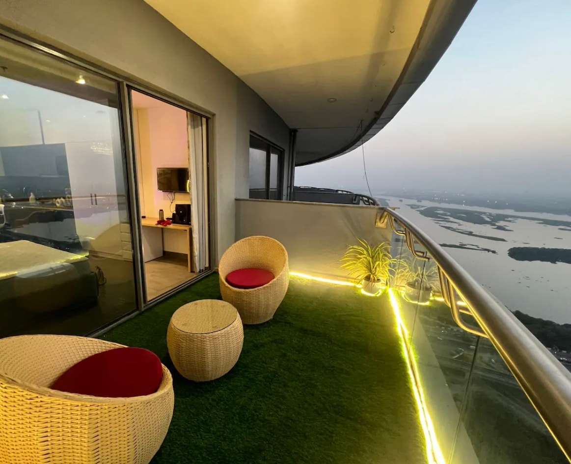 41st-Floor Ultra-Luxury Apartment | Yamuna River View • Elevated high-rise living in the tallest tower of Delhi NCR • Panoramic Yamuna river views from a premium floor • 200 Mbps high-speed Wi-Fi — ideal for remote work & long stays • Seamless food delivery (Swiggy, Zomato & more) • Easy cab access and close to key city attractions • In-complex conveniences: grocery store, salon, cafés & restaurants • Parking available outside the complex