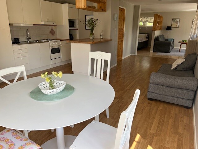 Útulná chalupa na venkově. 2 patra. 2 ložnice a 2 obývací pokoje, z nichž jeden má postel a rozkládací pohovku pro 2 osoby. Nejbližší soused je vzdálen asi 50 metrů a ty s nimi sdílíš bazén (běžící červen, červenec v srpnu). Houpačky na pozemku. Velké travnaté porosty. Štěrkové silnice a koňské pastviny. Během několika týdnů můžeš navštívit vesnici Viking, která je vzdálená asi 1 km. K dispozici je také koupaliště a autobusová zastávka asi 1 km daleko. Pokud máš hlad, je tu pizzerie Svanberga. Nabíjení elektromobilu (cena za hodinu)