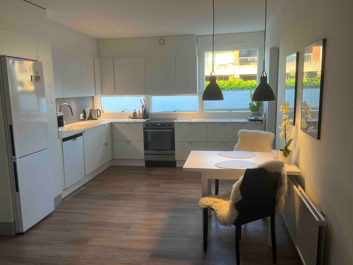 Útulný a moderní byt o rozloze 50 m2 s vlastním vchodem (vysoký suterén) v blízkosti pláží ke koupání, přístavu, lesa a centra města Svendborg. Je možné využívat terasu s venkovním nábytkem a deštníkem. Byt je světlý a přátelský s vlastní kuchyní a jídelním koutem pro 4 osoby, lednicí s malým mrazákem a plným servisem. Byt má 2 pokoje. V prvním pokoji je obývací pokoj se zbrusu novou rozkládací pohovkou a pokoj 2 má manželskou postel. Upozorňujeme, že tyto 2 pokoje mají společný východ.