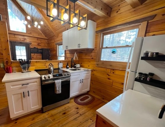 Our cabin is a studio with a hot tub & all the amenities. A queen bed, linens, towels, small refrigerator/freezer, microwave, single burner cook plate, dishes, utensils, glassware, pots/pans, toaster & coffee maker. Roku Tv & dvd player w/movies. The cabin has both an inside & outside (summer)shower. We have a privacy fence between our home & cabin. In the back yard you will find hot tub, firepit & screen house. Enjoy your stay! *Also check out our off grid camping cabin The Firefly on airbnb.