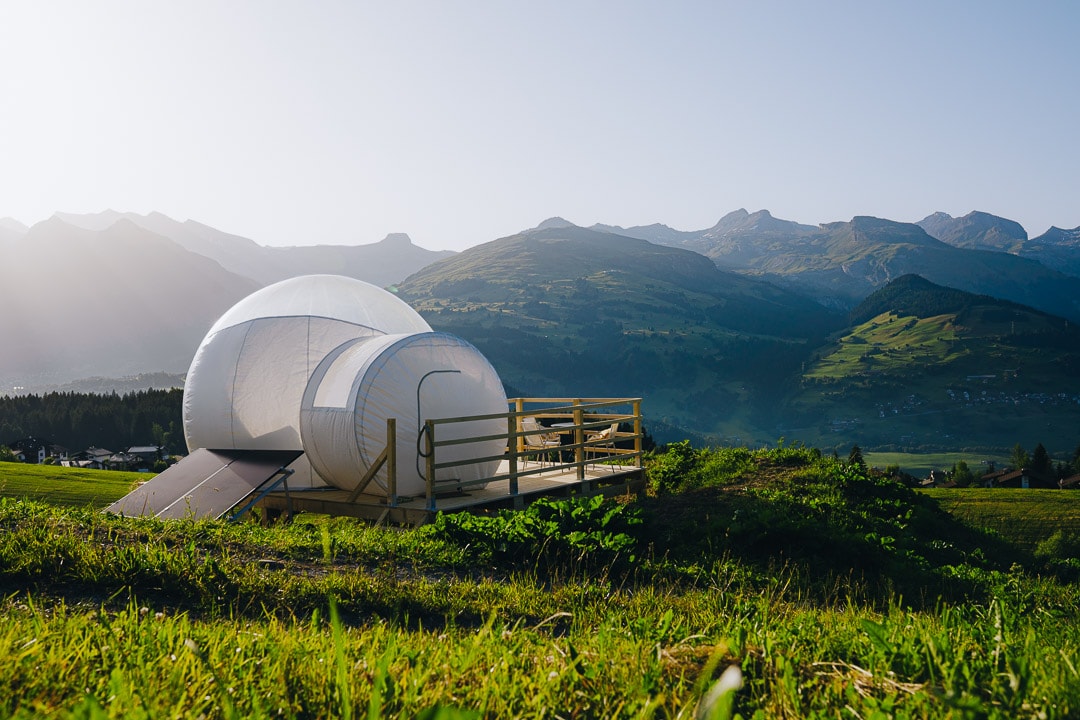 Uprostřed Surselvy leží tvůj bublinový stan na ekologické farmě Dalily a Emanuela Gigerových – místě plném ticha, přírody a tepla. Rodina s nadšením provozuje farmu už víc než 20 let. Bubble Tent se nachází na idylickém kempu s dalšími místy pro karavany a stany. Ať už jde o pěší turistiku, cykloturistiku nebo jen relaxaci – tady najdeš útočiště pro skutečný odpočinek v Grisonských horách daleko od shonu.