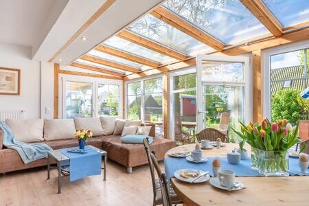This exclusive dream home offers a generous 250 m² of living space for up to 10 people. You'll find open, light-filled rooms in an upscale style. It features two living rooms, five bedrooms each furnished with a box-spring bed, two bathrooms (one with a shower and one with a bathtub), a fully equipped kitchen, a fitness room, a sauna, and a gallery. In the 3000 m² garden, you can unwind on one of the two terraces.